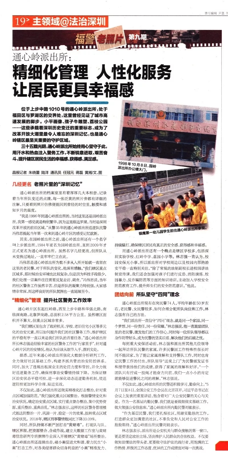 而通心嶺派出所還有一個特點(diǎn)是轄區(qū)學(xué)校多,包括深圳實(shí)驗(yàn)學(xué)校、紅嶺中學(xué)、荔園小學(xué)等。林志強(qiáng)一直認(rèn)為,校園安保無小事,所以派出所對學(xué)校周邊以及校園內(nèi)部的治安平穩(wěn)一直特別關(guān)注。