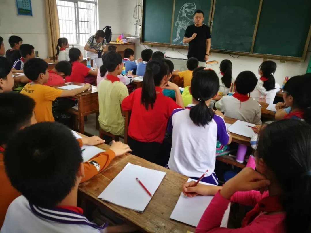 同學們在下面猜得熱火朝天,李老師卻一言不發(fā),繼續(xù)涂涂畫畫,漸漸的圖像露出了真容,一只栩栩如生的大恐龍出現(xiàn)在黑板上,教室里的小家伙們發(fā)出一聲聲驚嘆: