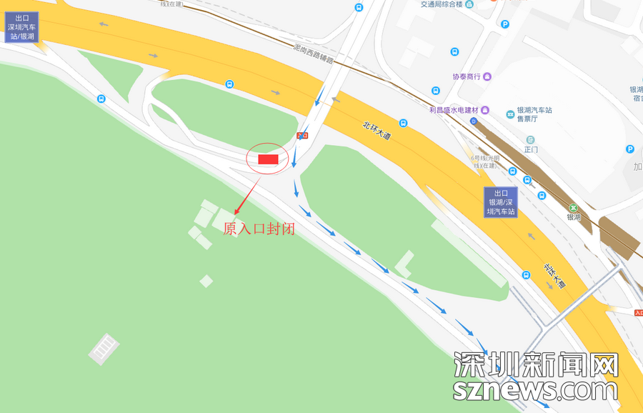 6月15日起,銀湖、深圳汽車站轉北環(huán)大道輔道東行方向入口永久性調整,如需去往羅湖、鹽田可延輔道直行至上步北路經(jīng)羅湖、鹽田右轉出口匝道后往泥崗西路東行。