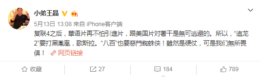 導(dǎo)演王晶此前曾發(fā)微博稱,“復(fù)聯(lián)4之后,華語片再不怕引進(jìn)片,跟美國片對著干是無可逃避的。雖然是硬仗,可是我們無所畏懼!”在諸如博納影業(yè)和阿里影業(yè)等影視公司的推動下,一批優(yōu)質(zhì)國產(chǎn)片正在登上市場的舞臺中心,為國內(nèi)電影大盤貢獻(xiàn)越來越多的力量。