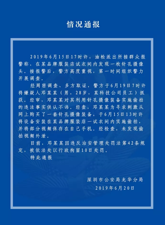 我們欄目這幾天一直在關注龍華優(yōu)衣庫試衣間內被人放置針孔攝像頭偷拍的事件。
