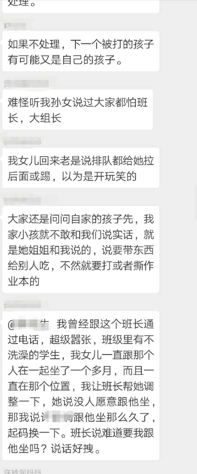 王先生把女兒的情況反映到家長(zhǎng)群里,結(jié)果群里的家長(zhǎng)紛紛表示,自己的孩子也反映當(dāng)天遭遇到班長(zhǎng)的毆打,有的孩子甚至“腿疼得難以走路”。而據(jù)孩子反映,其實(shí)類(lèi)似的毆打在班上已經(jīng)不止發(fā)生過(guò)一次。這名班長(zhǎng)是女生,平時(shí)很受班主任的信任,經(jīng)常利用班干部的權(quán)力隨意懲罰學(xué)生。“她曾經(jīng)多次要求班上同學(xué)給自己帶零食吃,不然就會(huì)被撕作業(yè)和毆打,還威脅不準(zhǔn)告訴家長(zhǎng)。”王先生稱(chēng),家長(zhǎng)們已經(jīng)將情況反映給班主任,但是班主任的反應(yīng)“相當(dāng)冷淡”,只是說(shuō)會(huì)了解一下情況。25日下午,記者電話(huà)聯(lián)系到了王先生女兒的班主任,他表示已經(jīng)就此事對(duì)班長(zhǎng)進(jìn)行了批評(píng)教育,但對(duì)于班長(zhǎng)此前多次毆打同學(xué)的行為他表示并不知情,“當(dāng)初讓這名同學(xué)做班長(zhǎng)是因?yàn)樗煽?jī)好,而且守紀(jì)律。而且我覺(jué)得,孩子之間有些矛盾很正常?!卑嘀魅握f(shuō)。(記者 李東明)