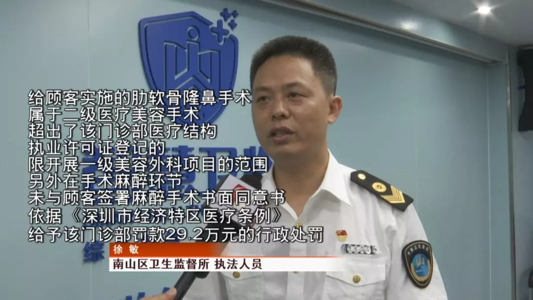 之前,林女士也將情況反映到南山區(qū)衛(wèi)生監(jiān)督所,執(zhí)法人員也到場對整個(gè)手術(shù)過程進(jìn)行了詳細(xì)調(diào)查。整個(gè)手術(shù)過程,恩吉娜醫(yī)療門診部是否真的存在違規(guī)操作呢?記者也聯(lián)系了南山區(qū)衛(wèi)生監(jiān)督所。