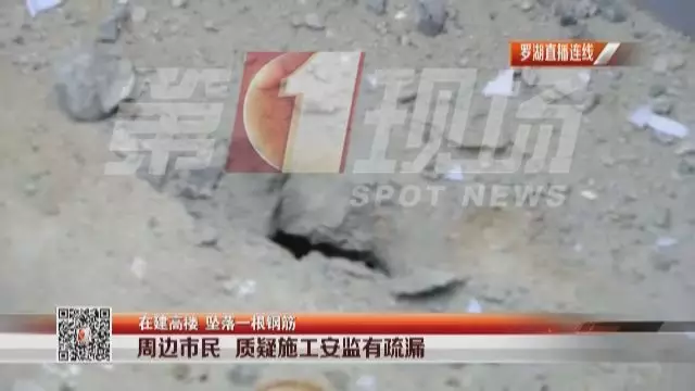 據(jù)目擊者介紹,在羅湖帝豪金融大廈附近,一根建筑鋼筋突然從高空墜落,砸在了路邊,連水泥地面都被鋼筋戳穿一個(gè)洞。