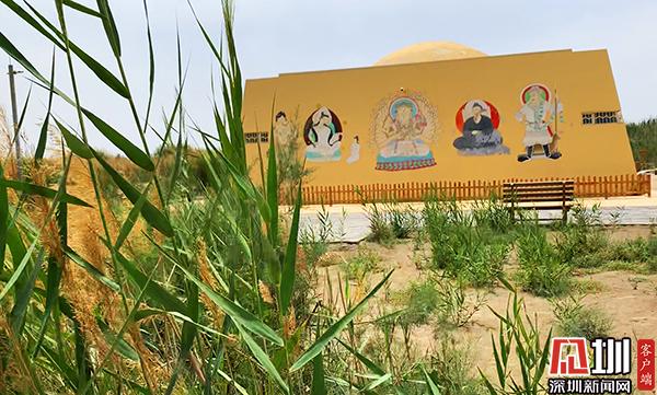7月12日,新疆和田達(dá)瑪溝佛教遺址博物館外墻上臨摹的佛教壁畫(huà)。