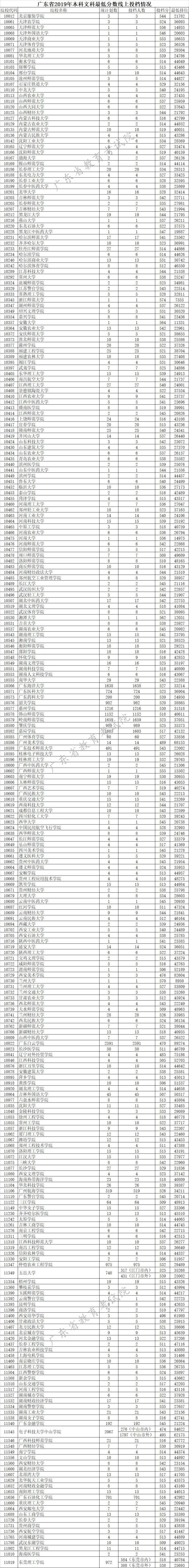 廣東省2019年本科文科最低分?jǐn)?shù)線上投檔情況
