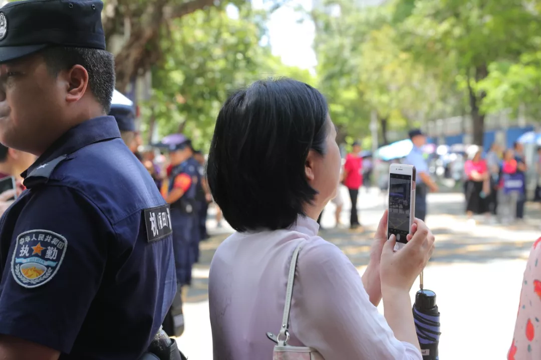 與往年不一樣,今年高考雖無(wú)風(fēng)雨,但是酷暑難耐,近500名送考家長(zhǎng)已經(jīng)在校門外站了2個(gè)多小時(shí)了。隨著離考試結(jié)束時(shí)間越來(lái)越近,原本還平靜的人群漸漸開始騷動(dòng)起來(lái)。為了緩解家長(zhǎng)們焦慮的心情,林志強(qiáng)跟家長(zhǎng)們建議,“一會(huì)兒學(xué)生們考完試出來(lái)咱們給他們鼓鼓掌!”“好!”林志強(qiáng)的建議立馬得到了家長(zhǎng)們的贊同。