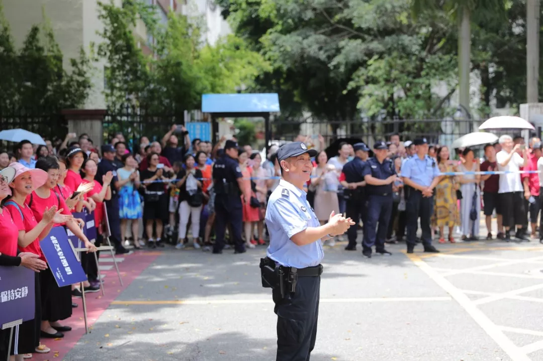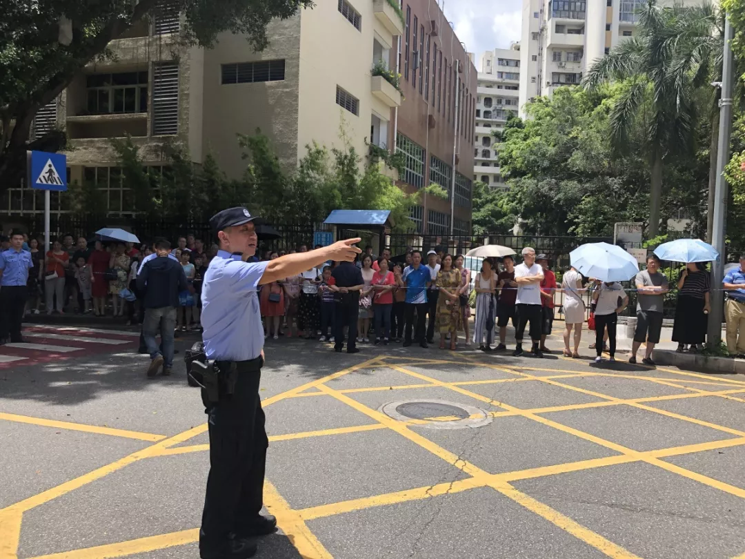 在深圳實(shí)驗(yàn)中學(xué)的校門外,正在執(zhí)勤護(hù)考的通心嶺派出所所長(zhǎng)林志強(qiáng)正跟送考的家長(zhǎng)們“嘮嗑”。“大家都站這么久了,辛苦了!一會(huì)考試結(jié)束后,咱們來(lái)猜一猜第一個(gè)走出來(lái)的是男生還是女生?!薄拔也率悄猩!薄拔也率桥?。”家長(zhǎng)們一掃臉上焦急的表情,開始笑著討論起來(lái)。