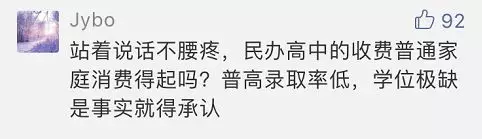 45.38%的公辦普高錄取率意味著有一半以上的學(xué)生上不了公辦普高,只能求其次,選擇職業(yè)學(xué)校和民辦高中。雖然說教育沒有高低之分,但是絕大多數(shù)家長都希望自己的孩子能夠上公辦普高,這也是競爭激烈的原因之一。為什么接受不了民辦高中?除了擔(dān)心辦學(xué)質(zhì)量問題,網(wǎng)友主要覺得民辦學(xué)費貴。