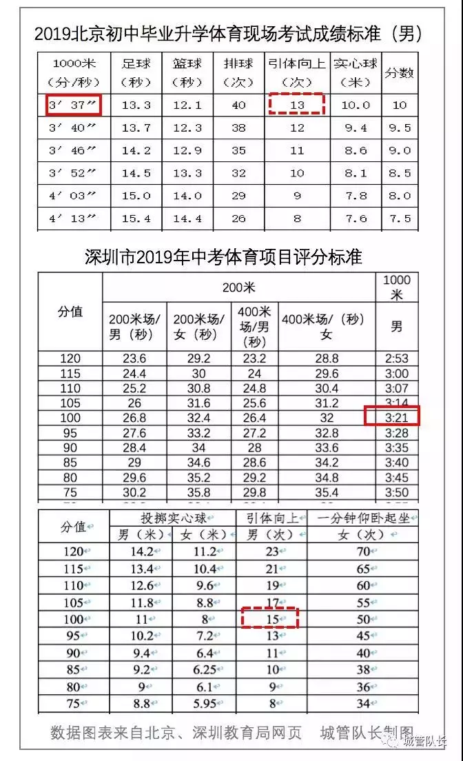 體育成績(jī),男子1000米跑,北京滿分3分37秒,上海滿分3分34秒,廣州滿分3分45秒,而深圳滿分3分21秒,且深圳中考體育占總分比更高。意味著,如果后面跟著一只大老虎,深圳的孩子要比北京的孩子跑快16秒才能不被老虎吃掉。其他項(xiàng)目基本上對(duì)深圳的孩子要求更高,比如引體向上,深圳孩子滿分15個(gè),北京孩子滿分13個(gè),上海孩子滿分11個(gè)。網(wǎng)友:憑什么咱的力氣要更大……