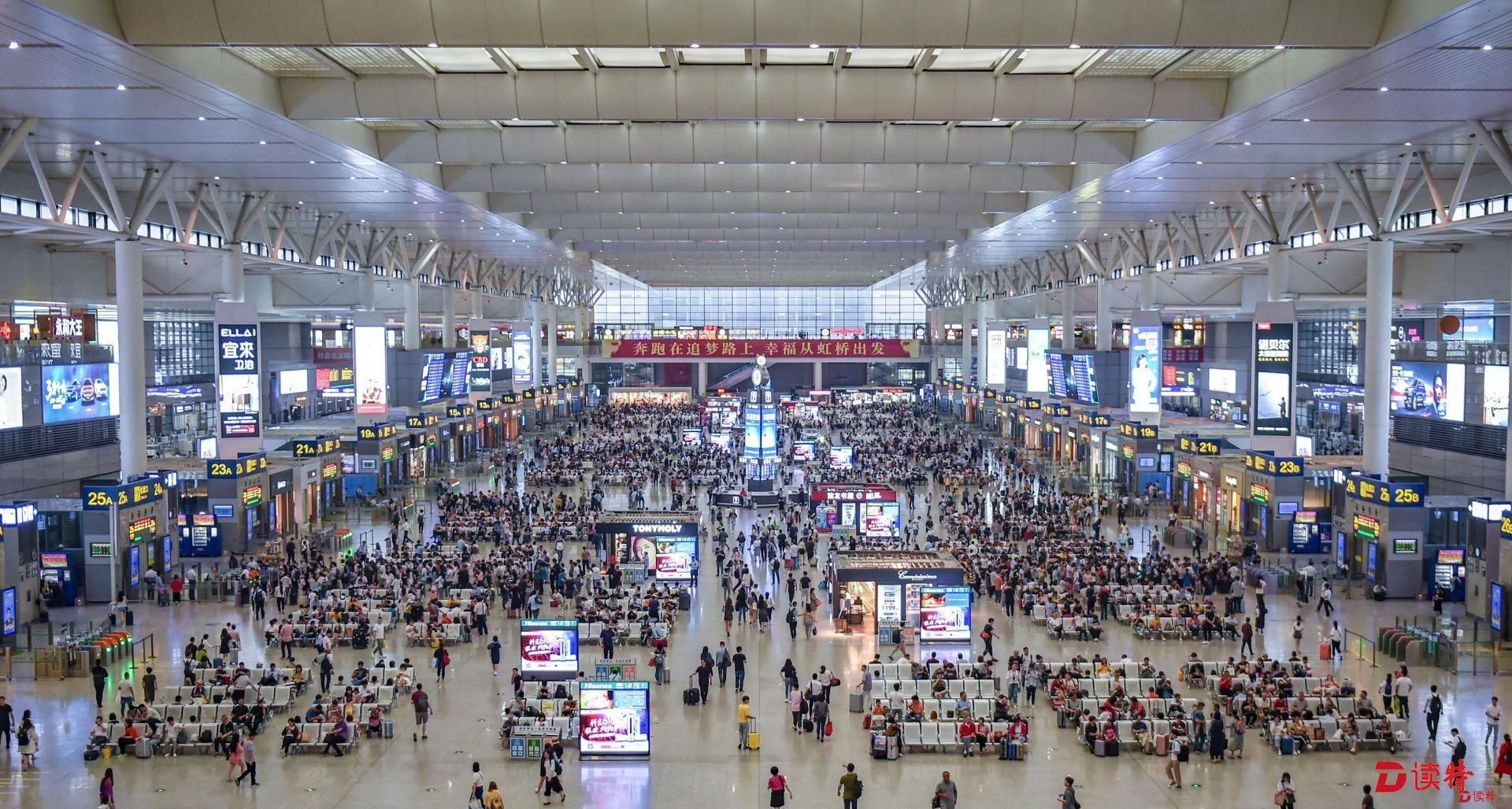 虹橋站是京滬、滬寧、滬杭三線高鐵的交會點,日均到發(fā)旅客40萬人次。