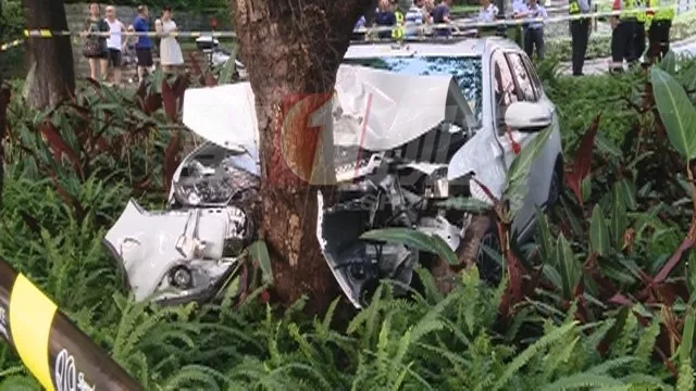據(jù)現(xiàn)場(chǎng)目擊者稱當(dāng)時(shí)車輛直接碾過人行綠道并撞飛了兩個(gè)小孩,最終車頭撞向荷花塘邊的一棵大樹才停住,如果不是這棵大樹阻擋,這輛車很有可能會(huì)沖向荷花塘里。