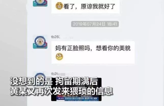 本以為事情就這么過去了,可沒想到,黃某被釋放后,這兩天又發(fā)來騷擾信息,而且內(nèi)容變本加厲,讓當(dāng)事人姬女士再一次陷入漩渦之中。