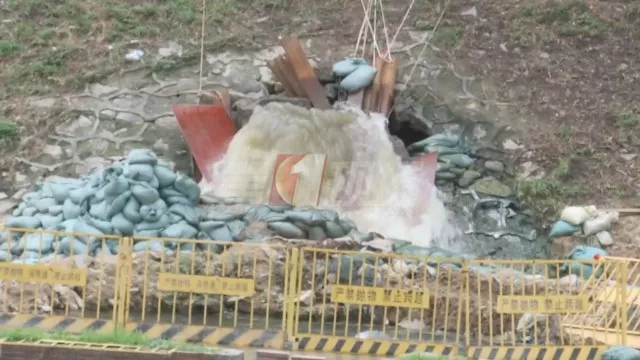 目前導流沒做完,所以大量污水就沿著污水管道反涌回去,從油松河上游溢流出來。