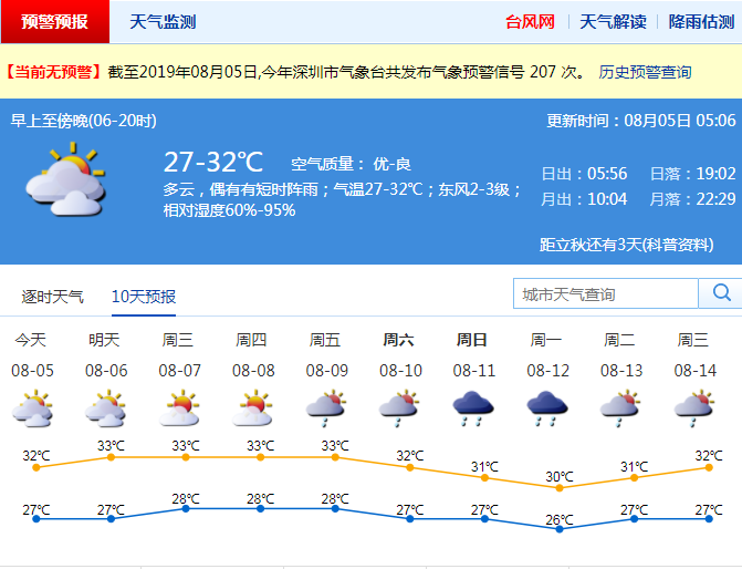 見(jiàn)圳客戶端·深圳新聞網(wǎng)2019年8月5日訊 上周末的暴雨為深圳帶來(lái)了一絲清涼,有市民表示,下雨涼快了,空調(diào)都不用開(kāi)就能睡了。然而,清涼的日子總是短暫的,炎熱的天氣又將到來(lái)。