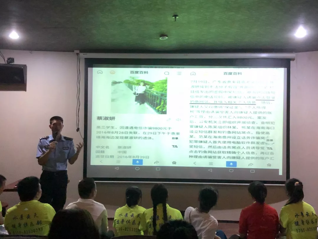 16時,福田區(qū)反詐騙教育學(xué)院公開課走進(jìn)福強派出所轄區(qū)水景云天國際健康水會酒店。深圳市公安局福田分局反詐民警講師江家林在授課前與群眾聊天,了解到一種以快遞郵費做騙局的新式詐騙手段。江警官以此為例,談到目前電詐手法花樣不斷翻新,且更新速度快,警方追擊辦案難度大,因此開展反詐騙公開課,希望能夠更迅捷有效地遏制詐騙犯罪猖獗現(xiàn)象。到場人員悉心聽講,反饋及時,公開課宣講效率高。