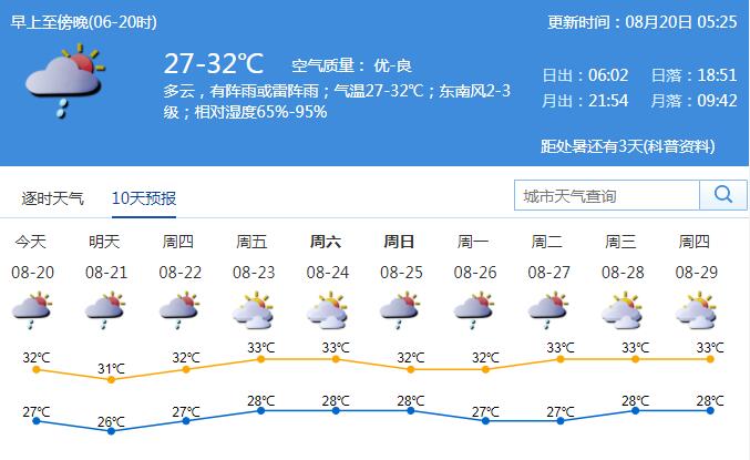 見圳客戶端·深圳新聞網(wǎng)2019年8月20日訊 近幾日,深圳天氣不穩(wěn)定,午后降雨多發(fā)。接下來天氣如何?預計未來兩天多陣雨天氣,提醒市民出行攜帶雨具,并做好防暑降溫措施。