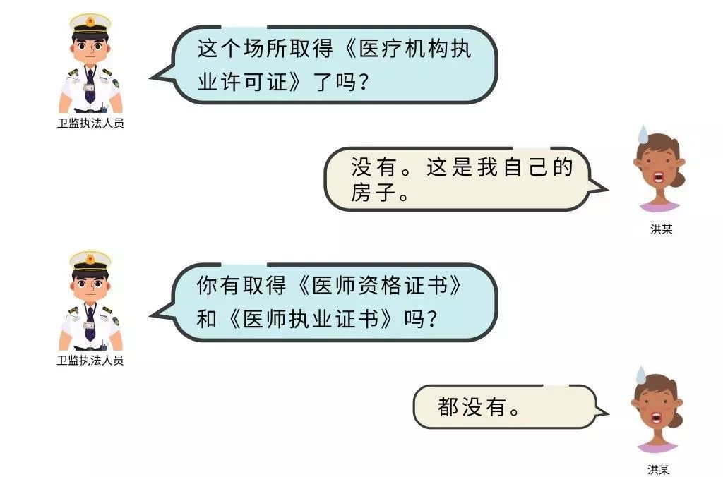 洪某終于承認(rèn)在家開展診療活動(dòng)
