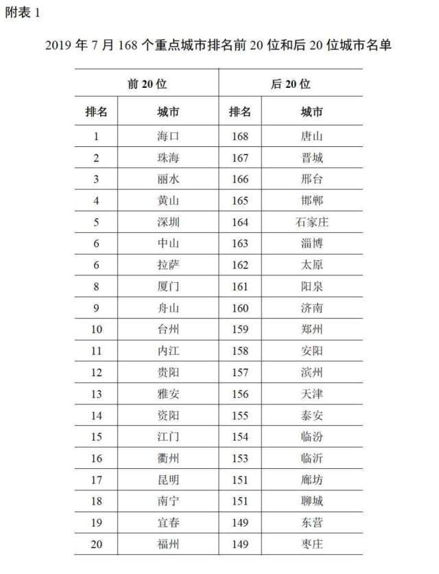 原標(biāo)題:1-7月全國(guó)空氣質(zhì)量深圳排第三,前20名廣東占6席
