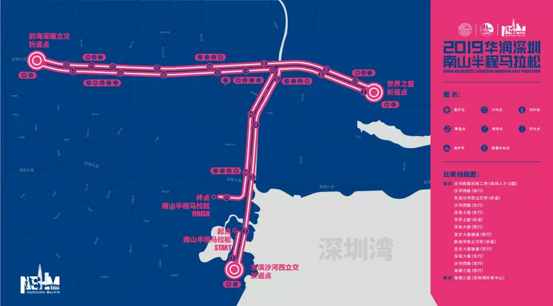 值得一提的是,今年南馬的路線較去年略有調(diào)整,賽事線路整體呈T字形,賽道起點在沙河西路后海二橋(深圳人才公園東門),賽道終點在海德三道(深圳灣體育中心),賽道主體由沙河西路和深南大道組成一縱一橫,途徑深圳灣總部經(jīng)濟(jì)片區(qū)、高新技術(shù)園、大沙河生態(tài)長廊、世界之窗、南頭古城等多個地標(biāo)性建筑,不僅彌補了往年沒有經(jīng)過深圳灣海域的遺憾,讓選手在賽跑之余一覽灣區(qū)海景,更向選手與觀眾充分展示南山自然人文科技之美。