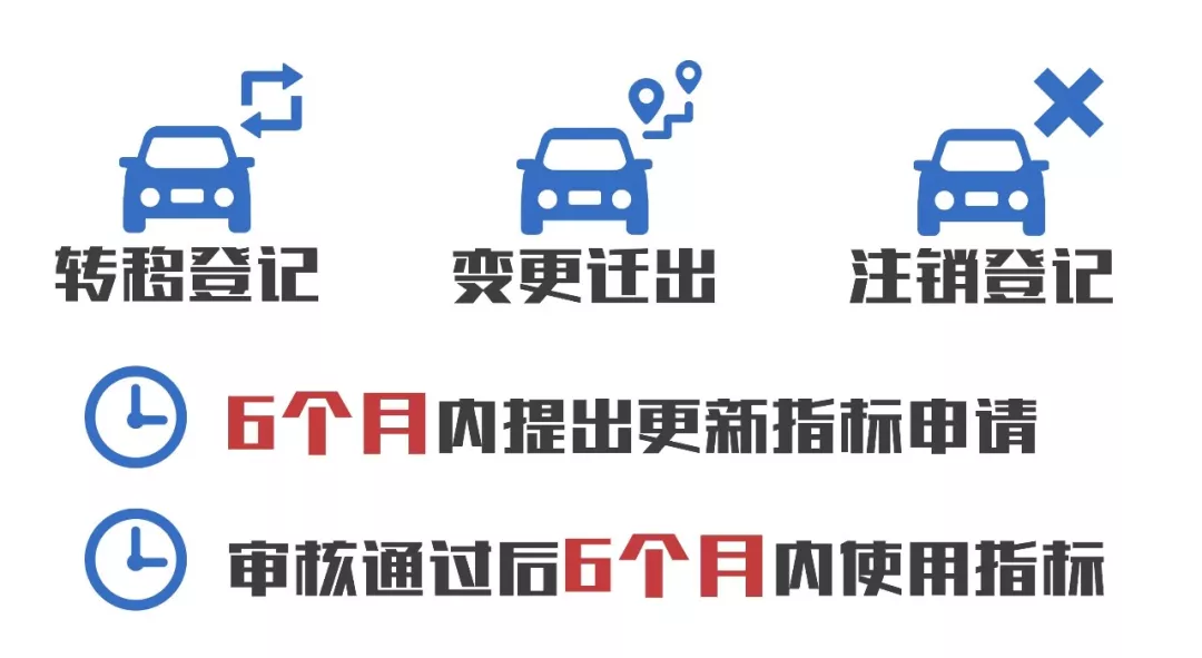 更新指標(biāo):小單位或者個(gè)人需要更新小汽車(chē)的,應(yīng)當(dāng)自完成轉(zhuǎn)移登記、注銷登記或者遷出本市之日起6個(gè)月內(nèi)提出更新指標(biāo)申請(qǐng)。