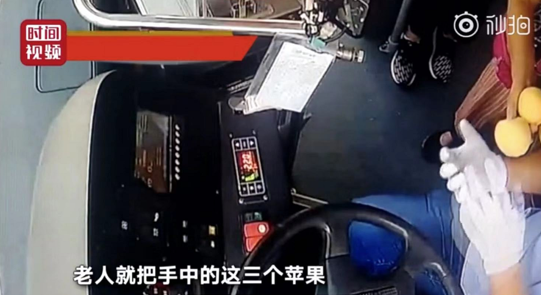 而老人隨后從包里拿出3個蘋果,