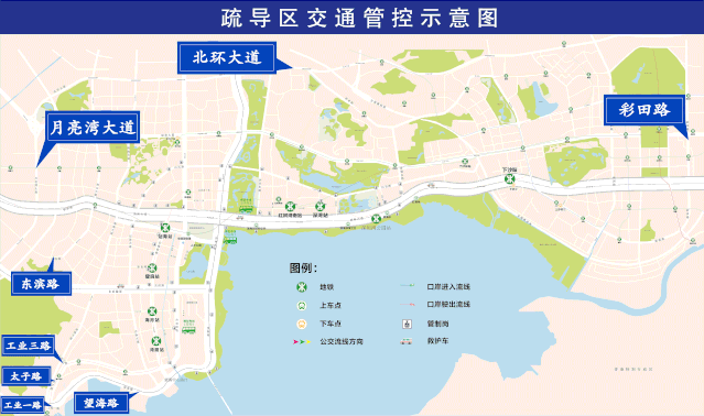 主應急路線:人才公園-海德三道-沙河西立交-濱海大道(雙方向);