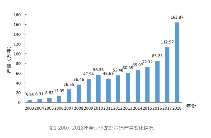 隨著生活水平的提高,人們對(duì)“食”提出了更高要求,色香味俱全的美食往往也更讓人難以抗拒?;疱仧拘↓埼r作為當(dāng)代青年人的“最愛(ài)”,已獨(dú)得恩寵許多年,尤其是小龍蝦。每年夏季,是吃小龍蝦的旺季。據(jù)部分媒體不完全統(tǒng)計(jì),光南京一個(gè)城市每年的龍蝦消費(fèi)量都超萬(wàn)噸,而北上廣深蓉5個(gè)城市,小龍蝦門店數(shù)均超3000家。此外,據(jù)2019年中國(guó)小龍蝦產(chǎn)業(yè)發(fā)展報(bào)告顯示,小龍蝦產(chǎn)業(yè)總產(chǎn)值達(dá)3690億元,占據(jù)了第三產(chǎn)業(yè)產(chǎn)值的主導(dǎo)地位。這種巨大的消費(fèi)力帶動(dòng)了小龍蝦養(yǎng)殖業(yè)的發(fā)展,到2018年,全國(guó)小龍蝦養(yǎng)殖產(chǎn)量已超163萬(wàn)噸。