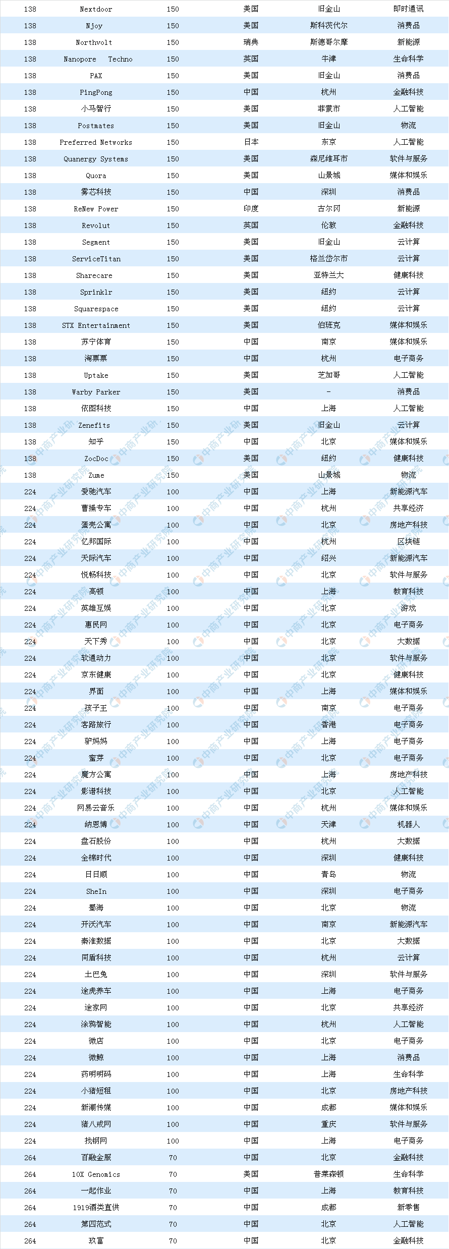 全球獨角獸榜單前十名的還有Infor、JUUL Labs、陸金所、愛彼迎、SpaceX、WeWork、Stripe??偛课挥谏虾5年懡鹚怯芍袊桨卜趸睦碡斊脚_,已從春華資本、中糧集團(tuán)和國際私募股權(quán)基金B(yǎng)lackPine等融資30億美元。另有微眾銀行、菜鳥網(wǎng)絡(luò)、京東數(shù)科、快手、大疆、京東物流、水滴等中國公司上榜。