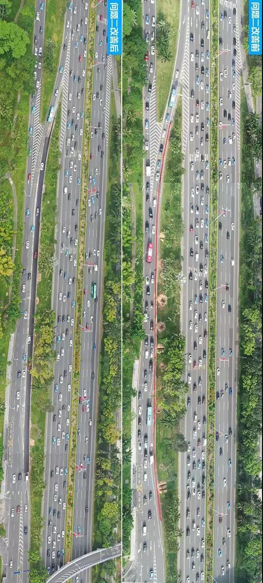 這一次改造歷時4個月,目前通行數(shù)據(jù)顯示,該路段總體運(yùn)行效率較改善前提升12%,高峰期路段平均車速由改善前的22.4km/h提高到40.4km/h。