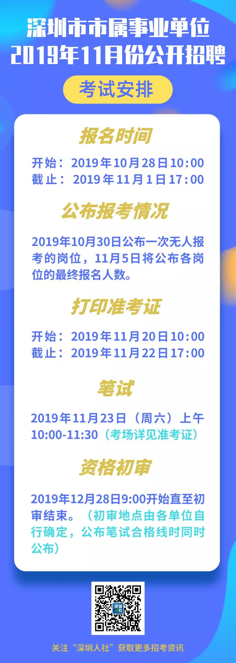 見圳客戶端·深圳新聞網(wǎng)2019年10月25日訊(見圳客戶端深圳新聞網(wǎng)記者 何暢)據(jù)“深圳人社”微信公眾號消息,深圳市市屬事業(yè)單位2019年11月份公開招聘公告正式出爐。此次一共招聘管理和專業(yè)技術(shù)崗位工作人員122名,面向社會人員和應(yīng)屆生的崗位均有。