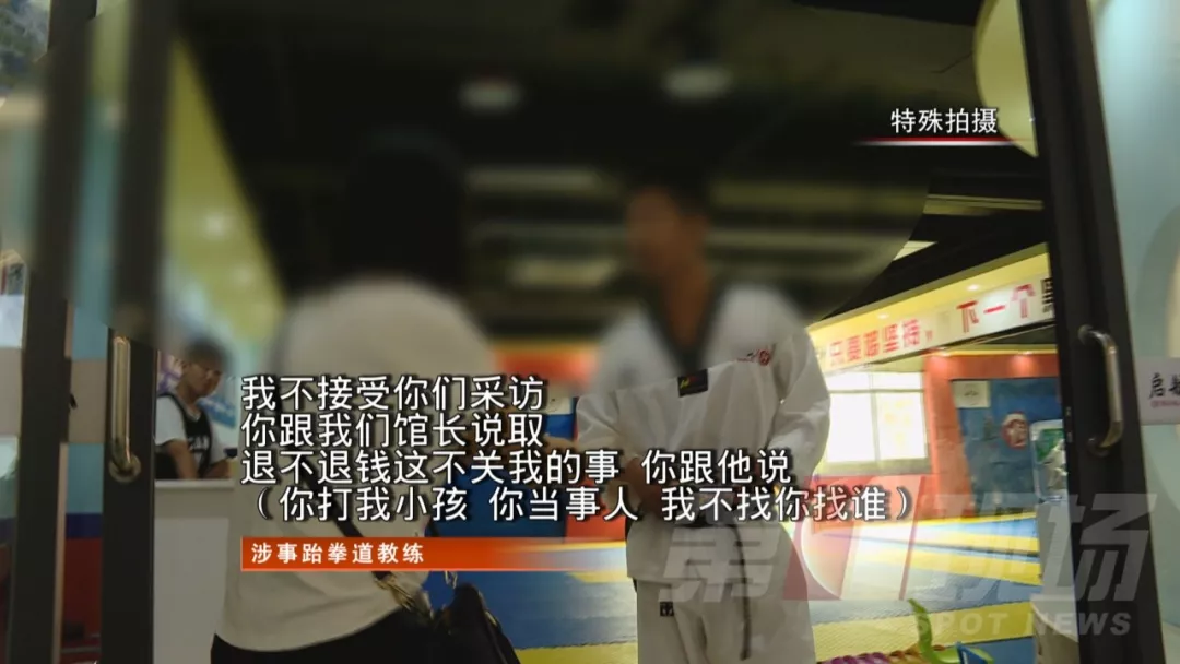 記者陪同陳女士來到這間跆拳道館,在現(xiàn)場有一名男子,陳女士說就是涉事教練。記者想要了解情況,但該男子反應激烈。