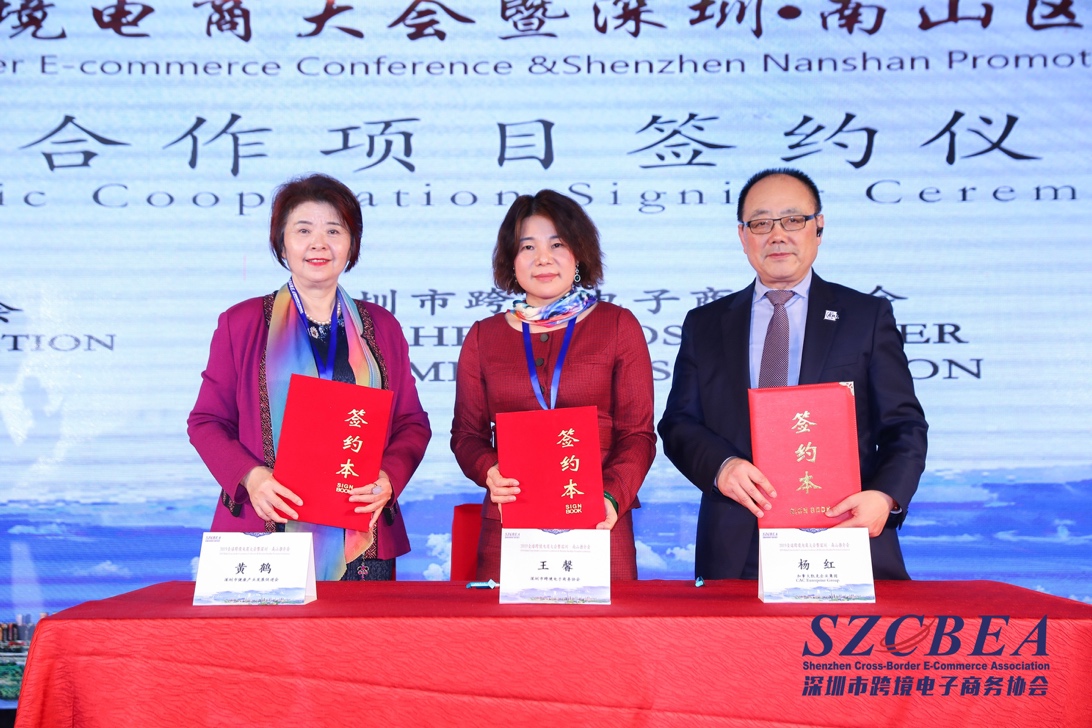 會上,深圳市健康產業(yè)發(fā)展促進會會長黃鶴女士、深圳市跨境電子商務協(xié)會執(zhí)行會長王馨女士、加拿大凱克企業(yè)集團董事長楊紅先生上臺進行了戰(zhàn)略合作簽約儀式。