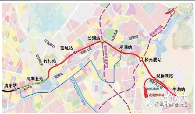 線路共設(shè)車(chē)站8座,分別為:清湖北站、竹村站、茜坑站、長(zhǎng)湖站、觀瀾站、松元廈站、觀瀾湖站、牛湖站,其中清湖北站為高架站。
