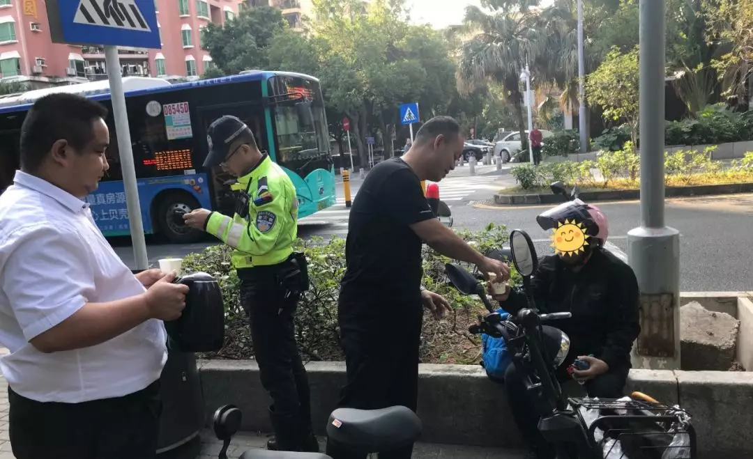 11月19日8時許,深圳市公安局福田分局福保派出所社區(qū)隊(duì)黃金海副隊(duì)長在轄區(qū)巡查中發(fā)現(xiàn),有一名騎著自行車的女子不慎摔倒在地,黃金海副隊(duì)長立即上前檢查其傷勢并將其扶到一旁先行休息。由于摔倒女子手捂膝蓋,表情痛苦,黃金海擔(dān)心她可能腿骨有損傷,便幫她撥打了120。等到救護(hù)車到來后,黃金海副隊(duì)長聯(lián)同醫(yī)護(hù)人員一起將受傷女子送上救護(hù)車后才放心離開。