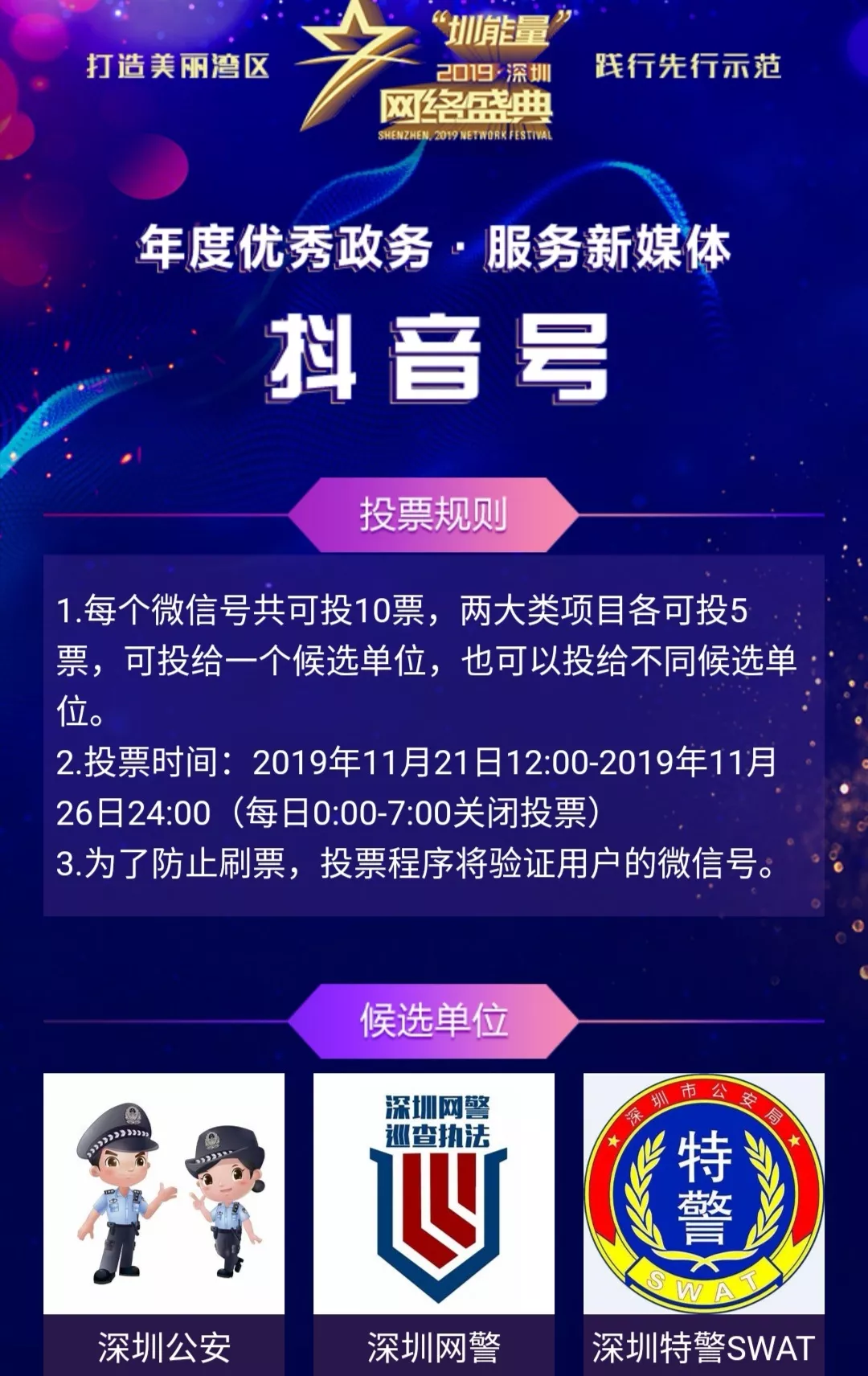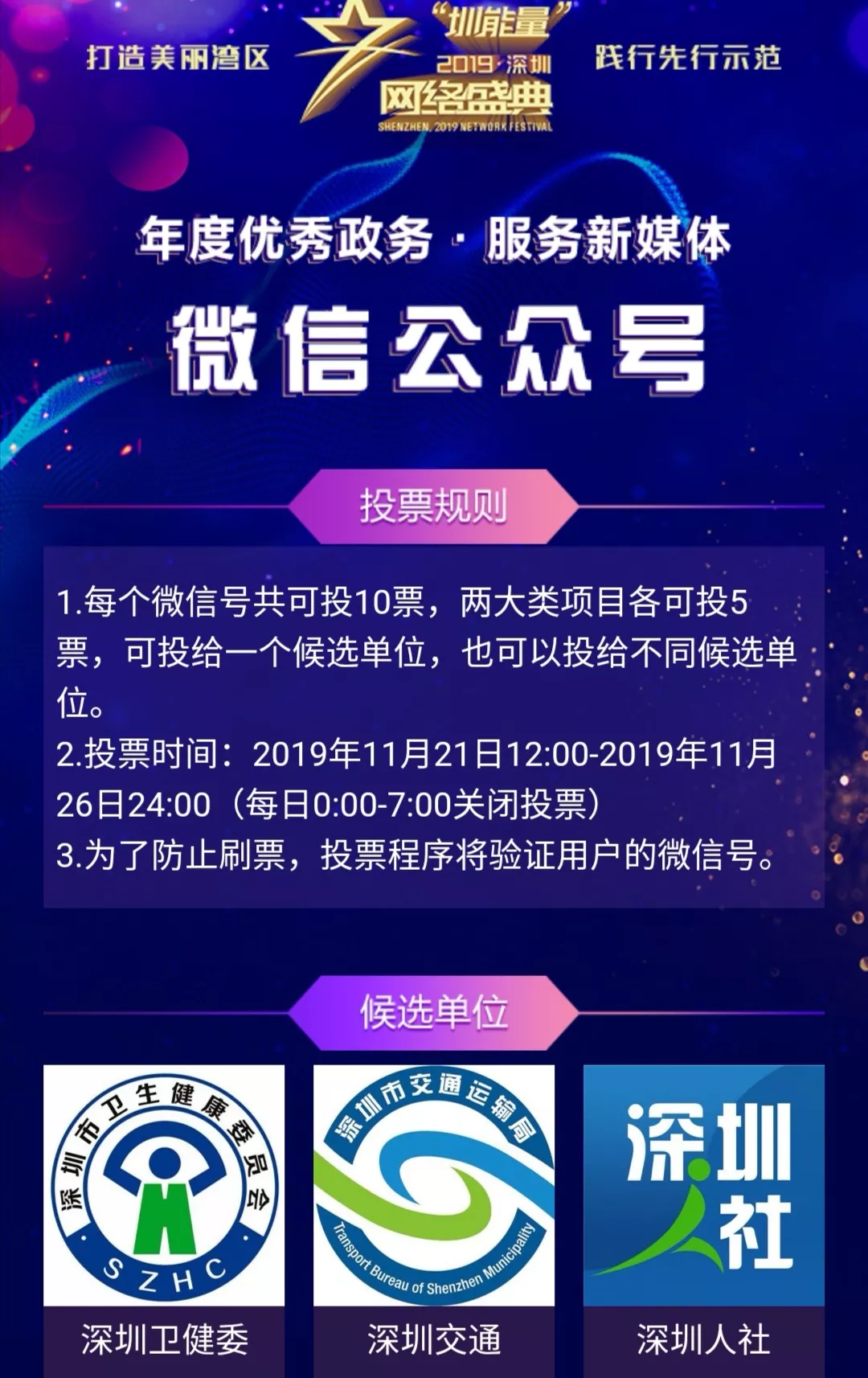 2.投票時間:2019年11月21日12:00-2019年11月26日24:00(每日0:00-7:00關(guān)閉投票)