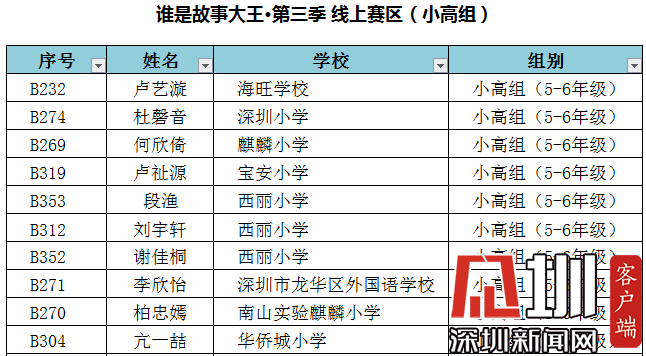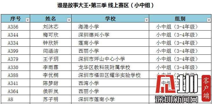 附:“誰是故事大王·第三季”-線上賽區(qū)晉級(jí)深圳市復(fù)賽名單