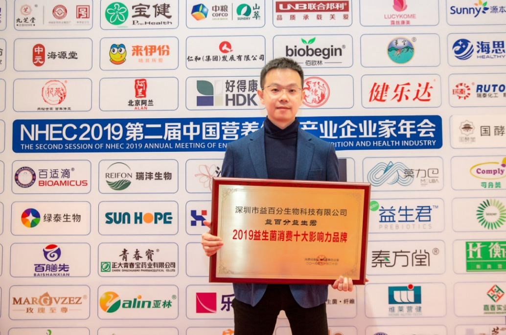 益百分不僅將益生君帶往了全國各地,同時也將企業(yè)的愛心與社會責(zé)任感付諸實踐。此次獲得“2019益生菌消費十大影響力品牌”榮譽,是業(yè)界對益生君技術(shù)水平的認(rèn)可,對益生君市場影響力的認(rèn)可,對益生君企業(yè)責(zé)任感的認(rèn)可。
