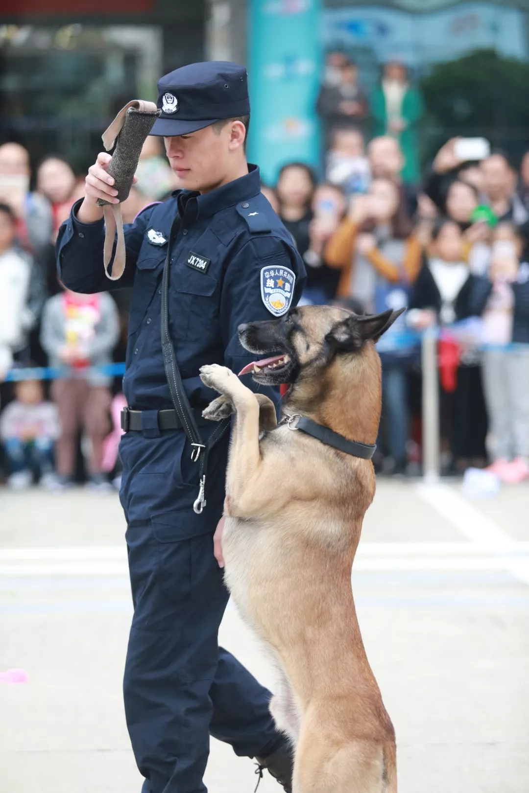 演出科目:跳躍人體障礙、實戰(zhàn)撲咬、箱包搜索、解救人質(zhì)、跳火圈等