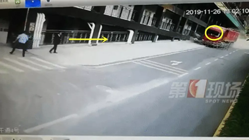 驚險(xiǎn)貨車從后方躥出