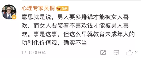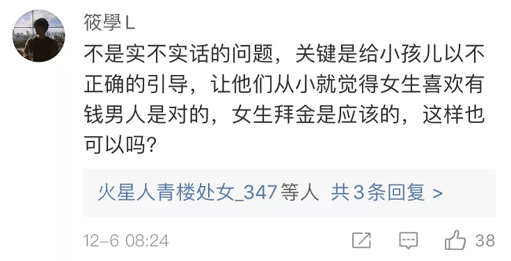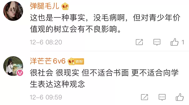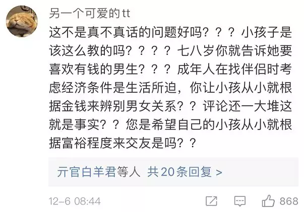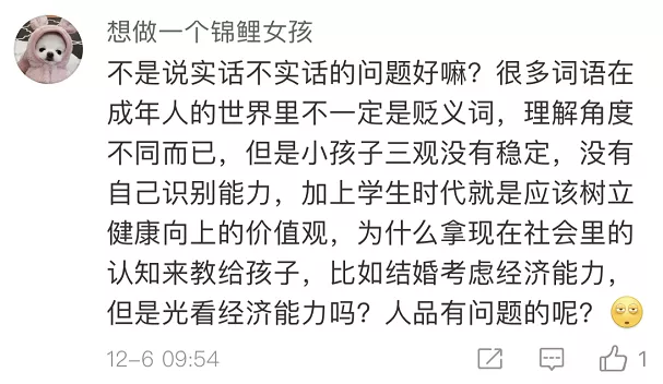 也有網(wǎng)友覺得,出發(fā)點(diǎn)是好的,內(nèi)容在成人看來或許有其“合理性”,但不應(yīng)該拿來這樣教孩子。