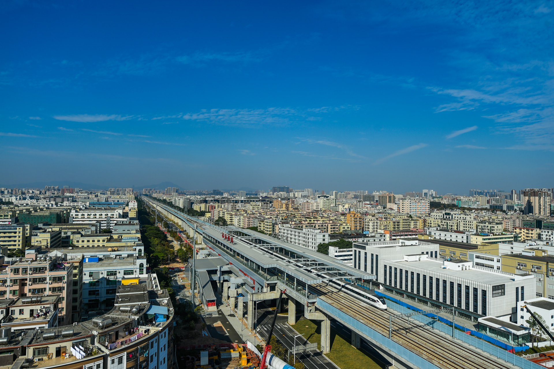 深圳特區(qū)報2019年12月9日訊 近日,穗莞深城際鐵路展開動車組試運行工作。12月8日,記者在福海西站捕捉到試運行動車組的身影。據(jù)了解,穗莞深城際鐵路起點為廣州新塘站,終點為深圳機場站,全長約76公里。深圳境內(nèi)設(shè)4個車站,共計15個車站(高架站10座,地下站5座)及區(qū)間2個隧道。待相關(guān)準(zhǔn)備測試工作結(jié)束后,線路將投入載客運營。(記者 劉羽潔)