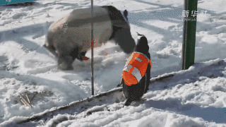 前幾天,一只企鵝坐火車(chē)到亞布力景區(qū),和兩只大熊貓“面基”。