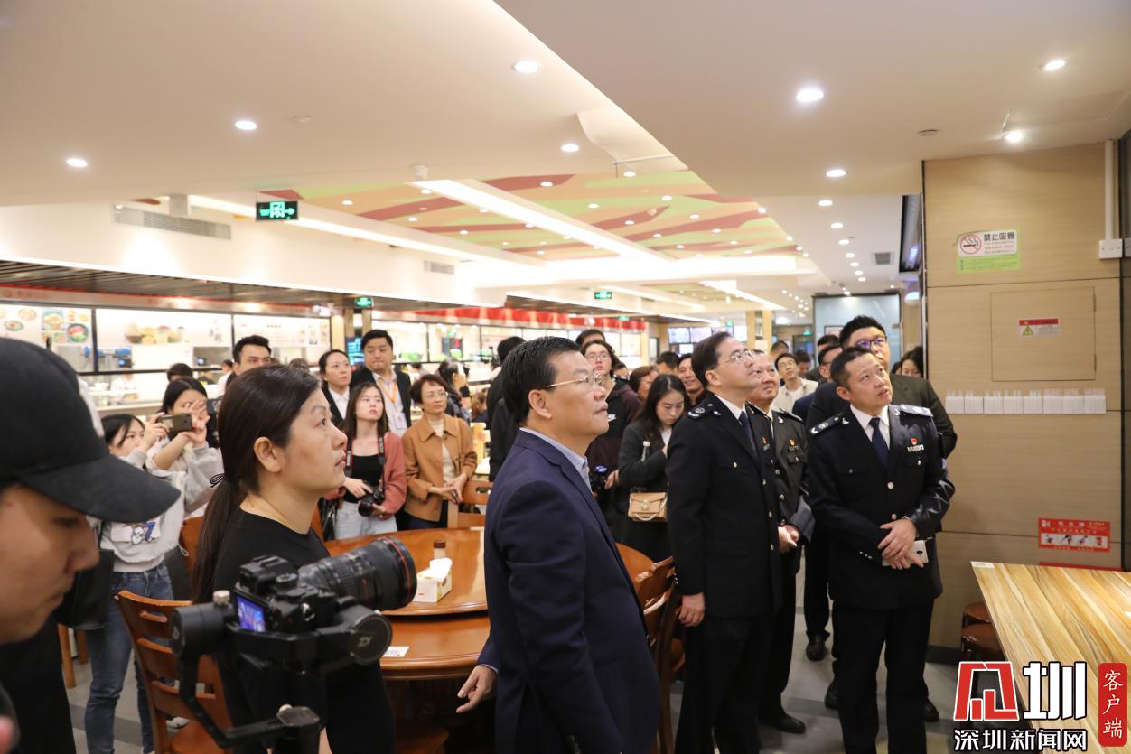 隨后,與會(huì)領(lǐng)導(dǎo)共同為羅湖水貝熟食中心揭牌,并一同參觀了熟食中心。在參觀、體驗(yàn)熟食中心過程中,黃敏副市長(zhǎng)對(duì)羅湖區(qū)委區(qū)政府高位推動(dòng)、深入貫徹落實(shí)食品安全戰(zhàn)略工作表示肯定,希望羅湖區(qū)進(jìn)一步擴(kuò)大熟食中心宣傳,采取增加二維碼張貼率、完善路線指引等方式,讓民生工程惠及更多市民;并不斷加強(qiáng)食品安全管理水平,可引入“圳品”提升餐飲服務(wù)質(zhì)量,切實(shí)提高消費(fèi)者在熟食中心用餐的獲得感和幸福感。