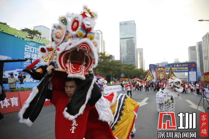 起跑前進行了舞獅表演。