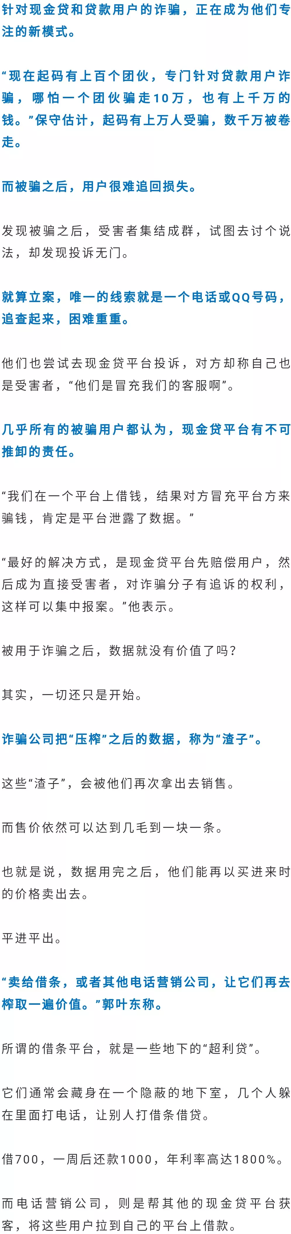 在2017年監(jiān)管收緊后,很多不正規(guī)的小現(xiàn)金貸公司,業(yè)務(wù)難以為繼,就開(kāi)始干起銷(xiāo)售數(shù)據(jù)的生意。
