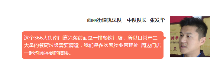 西麗執(zhí)法隊(duì)方面表示,無(wú)論是蔡某國(guó)自稱執(zhí)法隊(duì)工作人員,還是被投訴對(duì)象直接上門找市民,這樣的行為都明顯不符合規(guī)范。另外,對(duì)于市民投訴環(huán)境衛(wèi)生的問(wèn)題,他們也正在想辦法進(jìn)行改進(jìn),并同時(shí)征詢附近商戶居民和物管的意見。