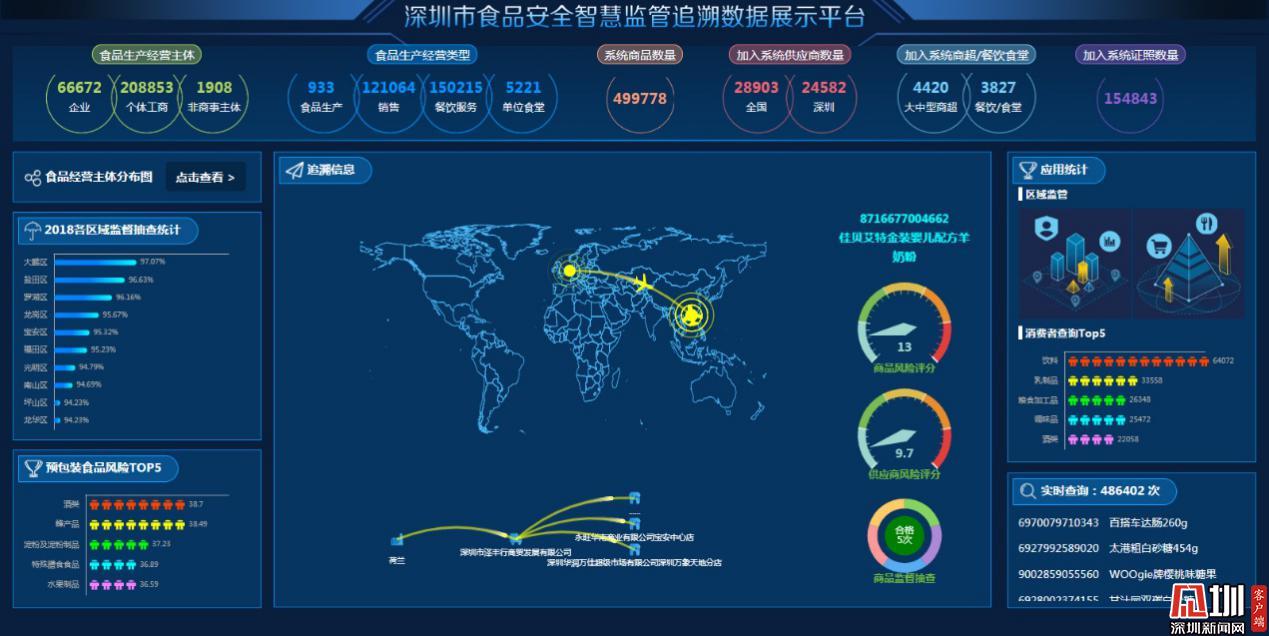 據(jù)悉,截至2019年12月13日,已有19000余家食品生產(chǎn)經(jīng)營主體注冊食品安全追溯,共采集35萬余商品條數(shù)據(jù)信息,有效證照近15萬張。食品追溯系統(tǒng)應(yīng)用實現(xiàn)全市2570家中小學(xué)、幼兒園學(xué)校食堂全覆蓋,深圳4419家商超使用該系統(tǒng),共上傳有效臺賬63萬條,為全市的食品安全追溯織就了嚴(yán)密的一張網(wǎng)。