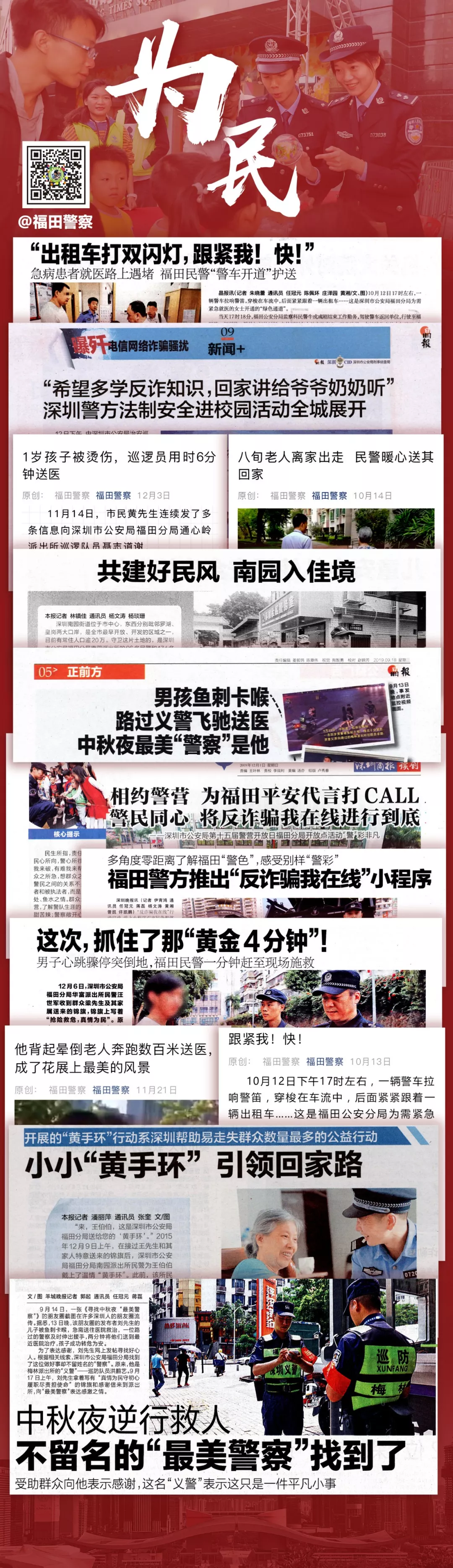 有這么一些事,是危難時(shí)刻的挺身而出,是辦到市民心坎里的民生警務(wù),是群眾突發(fā)意外時(shí)的及時(shí)救助,是扶貧幫困挽袖獻(xiàn)血的長久堅(jiān)持,是尋回迷路孩子的一個(gè)擁抱,是警營開放日上的一次近距離接觸......