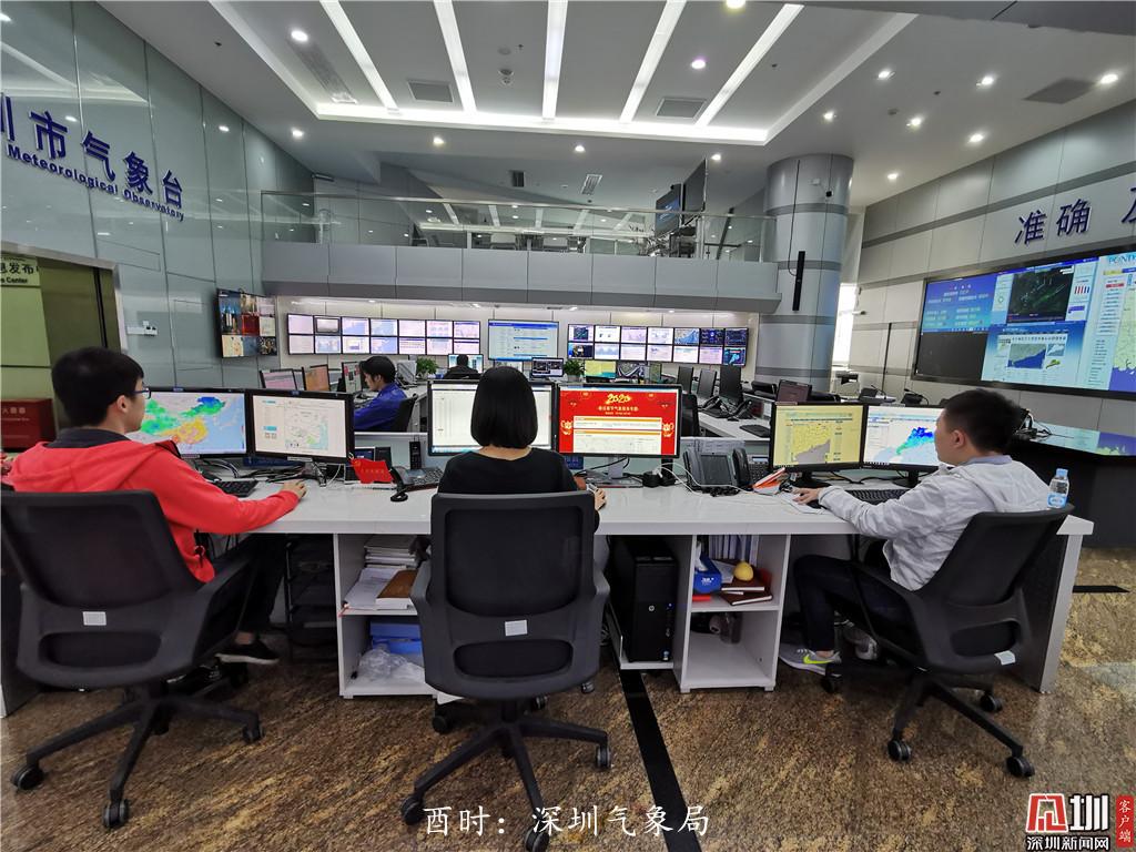 酉時:17點31分,深圳市氣象局預報服務團隊的蔡偉源、鄭群峰、賀佳佳、胡霄、張超春節(jié)值守,在氣象預警預報業(yè)務大廳密切關注春運天氣。